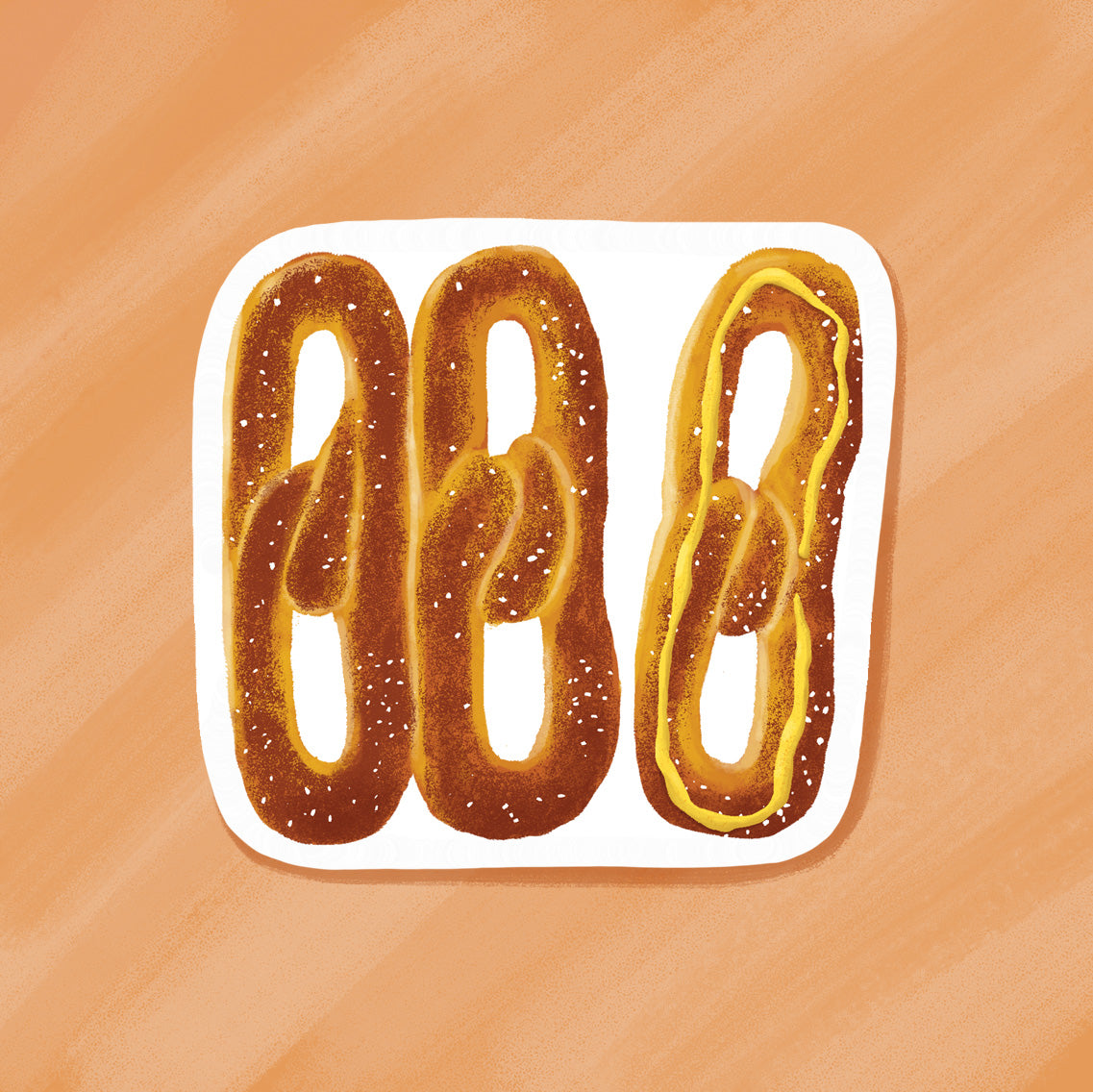 This is a die-cut sticker of my Philly Pretzels illustration. There's nothing like an authentic soft baked Philadelphia style pretzel. Nicely salted, slightly crunchy on the outside, soft, warm and chewy on the inside. Eat it plain, with mustard, or with cheese. Your choice!